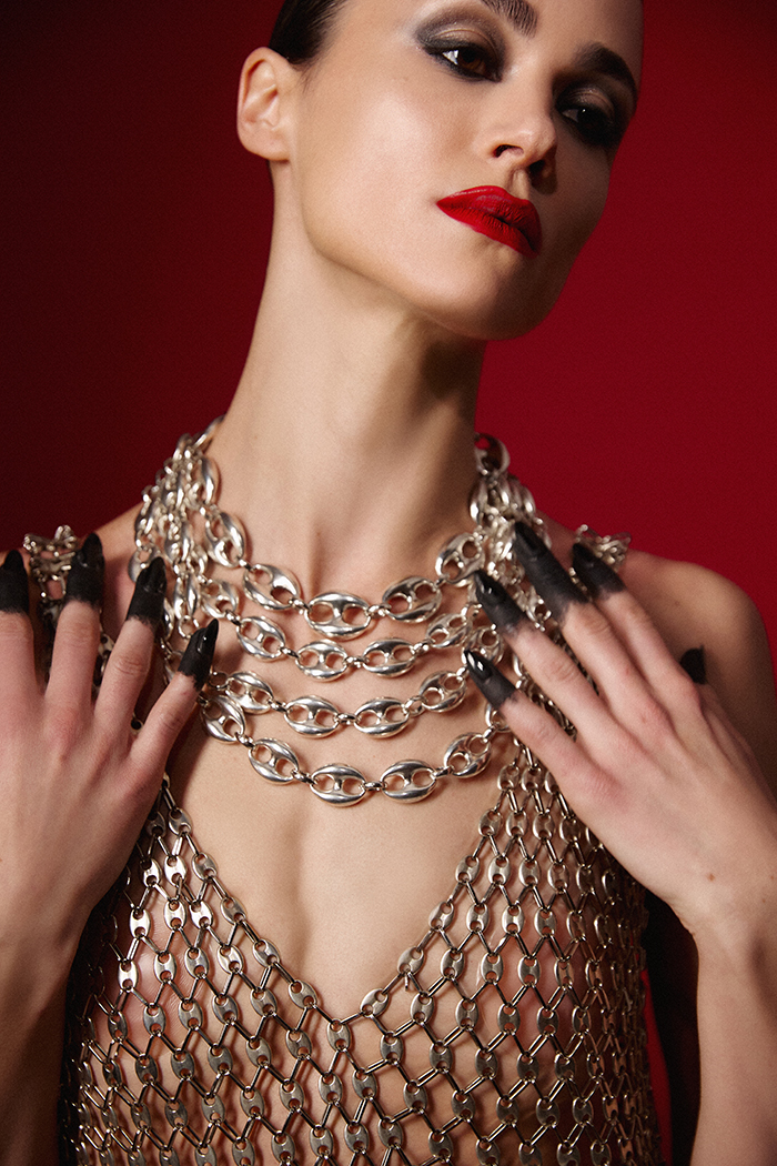 Handcrafted Necklace Coffee Beans -Shaped Links. Silver.
