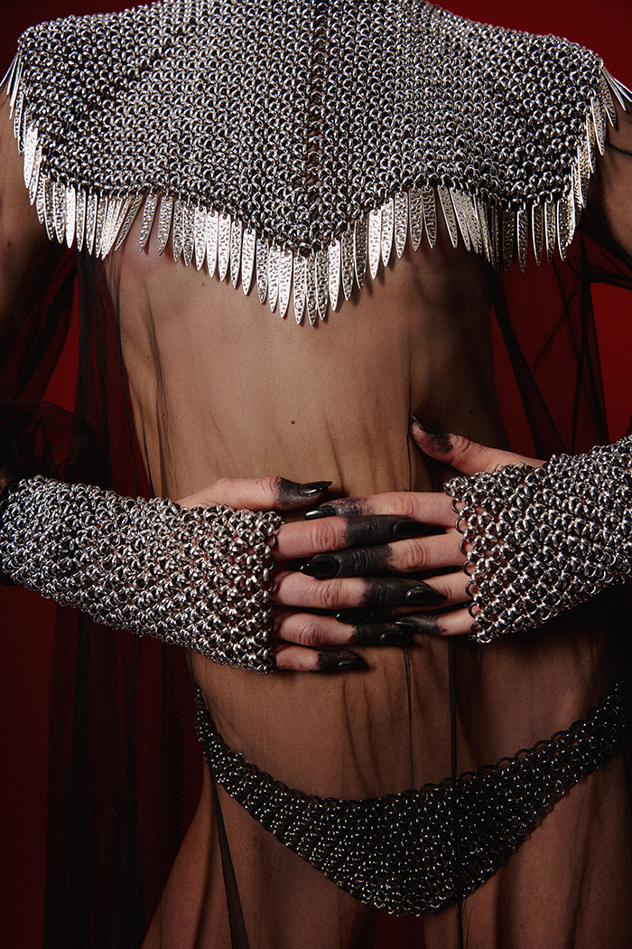 Handcrafted Mittens Made in a Combination of Aluminum & Latex. Black & Silver.