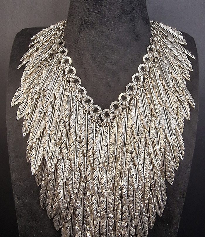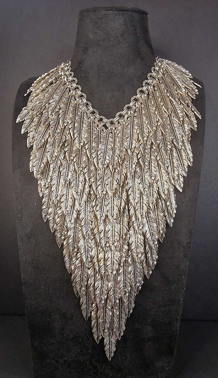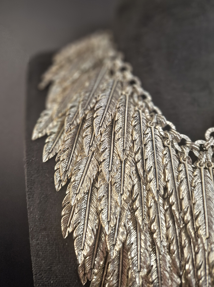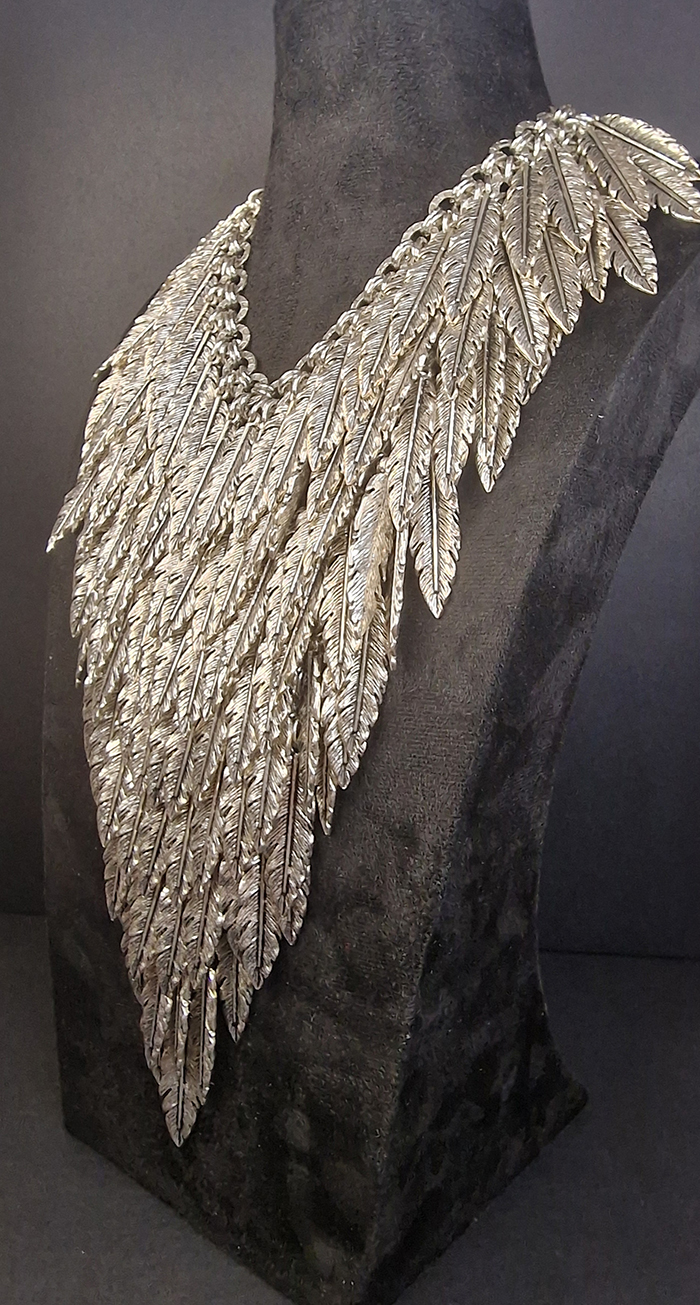 Handcrafted Necklace Made in a Combination of Steel & Aluminun with Feathers .Silver.