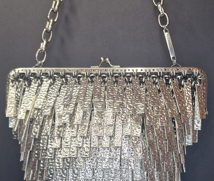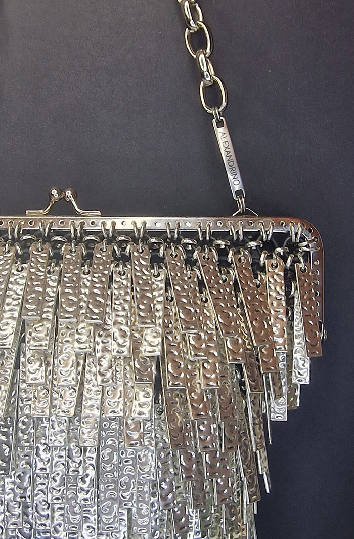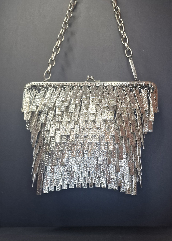 Handcrafted Bag Made in a Combination of Latex & Aluminum Scales. Silver.