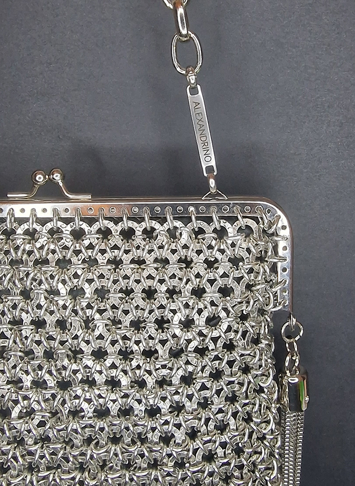 Handcrafted Bag Made in a Combination of Steel & Aluminum. Silver.
