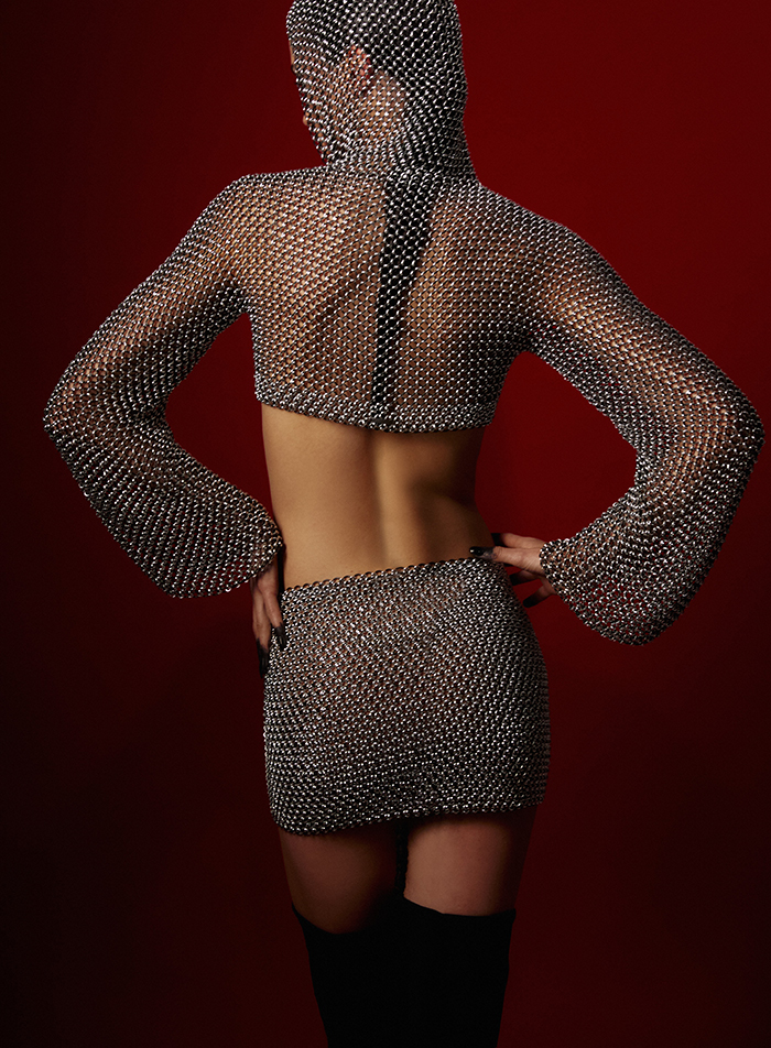 Handcrafted Short Skirt Made in a Combination of Aluminum & Latex. Black & Silver.